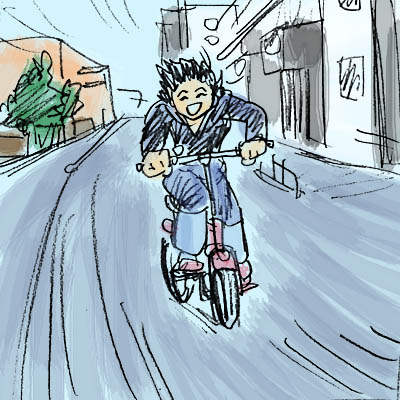 | なんともはや不思議な物語となっております。コンセプトなどはわからないのですが、冒頭から林檎さんは道ばたで死んでます。いや、瞳は開いてるので、倒れてるだけなのかもしれませんが。たまに場面が変わると、そこはボーカルの林檎さんだけがいないバンドが映る。相変わらず倒れている林檎さん。人が集まってくるが声をかけるワケでもなく、この「幸福論」を口ずさんで倒れてる林檎さんを見つめているだけ。助けないの?ねぇ、助けないのかよ?…と突然林檎さんは幸福論を歌い始め起き上がり、いつのまにかバンドの中で歌っているのです。ん〜、意味わかりません。わかりませんが林檎さんらしくて良いのではないでしょうか。 しかしこのPVでの一番の見どころはラストの「林檎さんが自転車をこぐシーン」だと思います。若く、初々しくてとてもカワイイですよん。 |